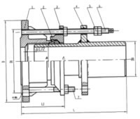 限位伸縮接頭是在AF型法蘭松套補償接頭的基礎(chǔ)上增設(shè)限位螺柱而成,最大伸縮量處用雙螺母鎖定,補償因熱脹冷縮和地基沉降引起的管線軸向位移及撓曲和偏心,從而保護閥門的設(shè)備。根據(jù)連接方式的不同分為單法蘭限位伸縮接頭和雙法蘭限位伸縮接頭。